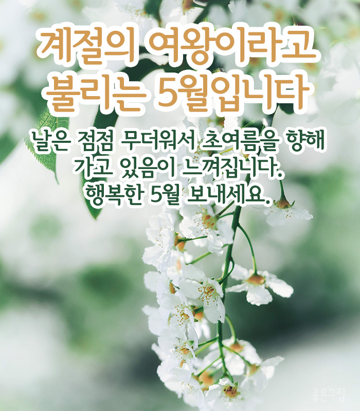 - “5월의 햇살처럼 환하게 웃는 하루 되시길 바랍니다.”