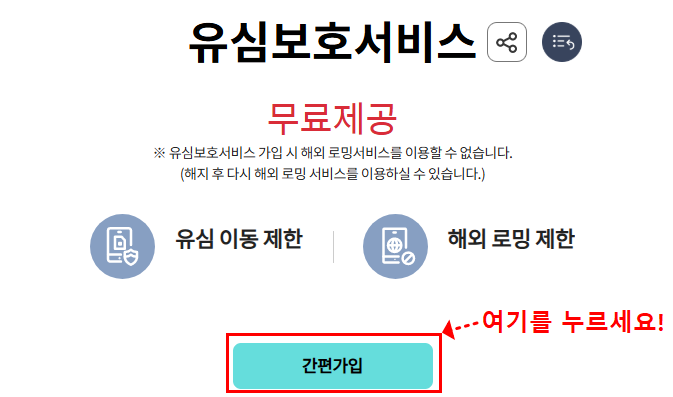 - 해외 로밍 차단 기능이 자동 적용됩니다.
